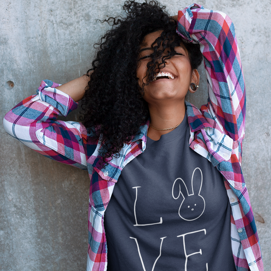 Our tees are inspired by our family's bunny adventures and our journey as accidental bunny parents through fostering a rescue. We know you need an outfit for every bunny occasion: cleaning the bunny's cage, shopping for their treats, lounging with them in the evening, and sneaking away for some me-time—only to find them hopping for joy when you return (or is it just because it's feeding time?).