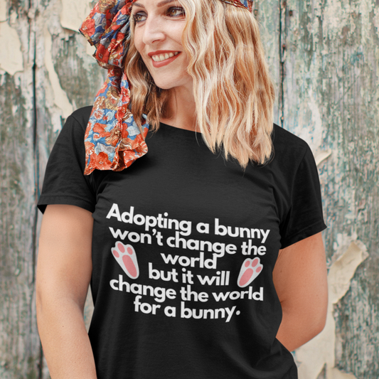 Whether you're a proud bunny parent, considering adopting or fostering, or watching your kids hop with joy over these fluffy creatures, our t-shirts are designed to make you smile and express your unique style.