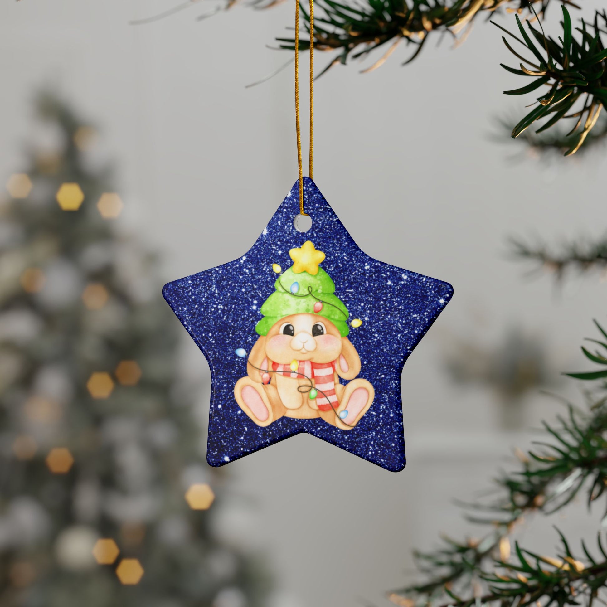 Mini Lop Christmas Lights, Star-Shaped Ceramic Ornament