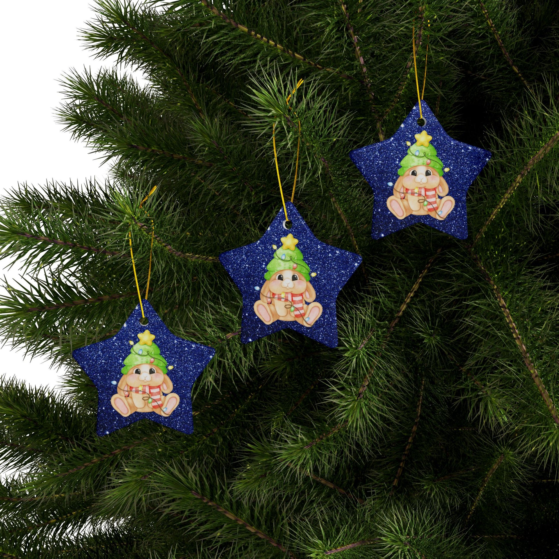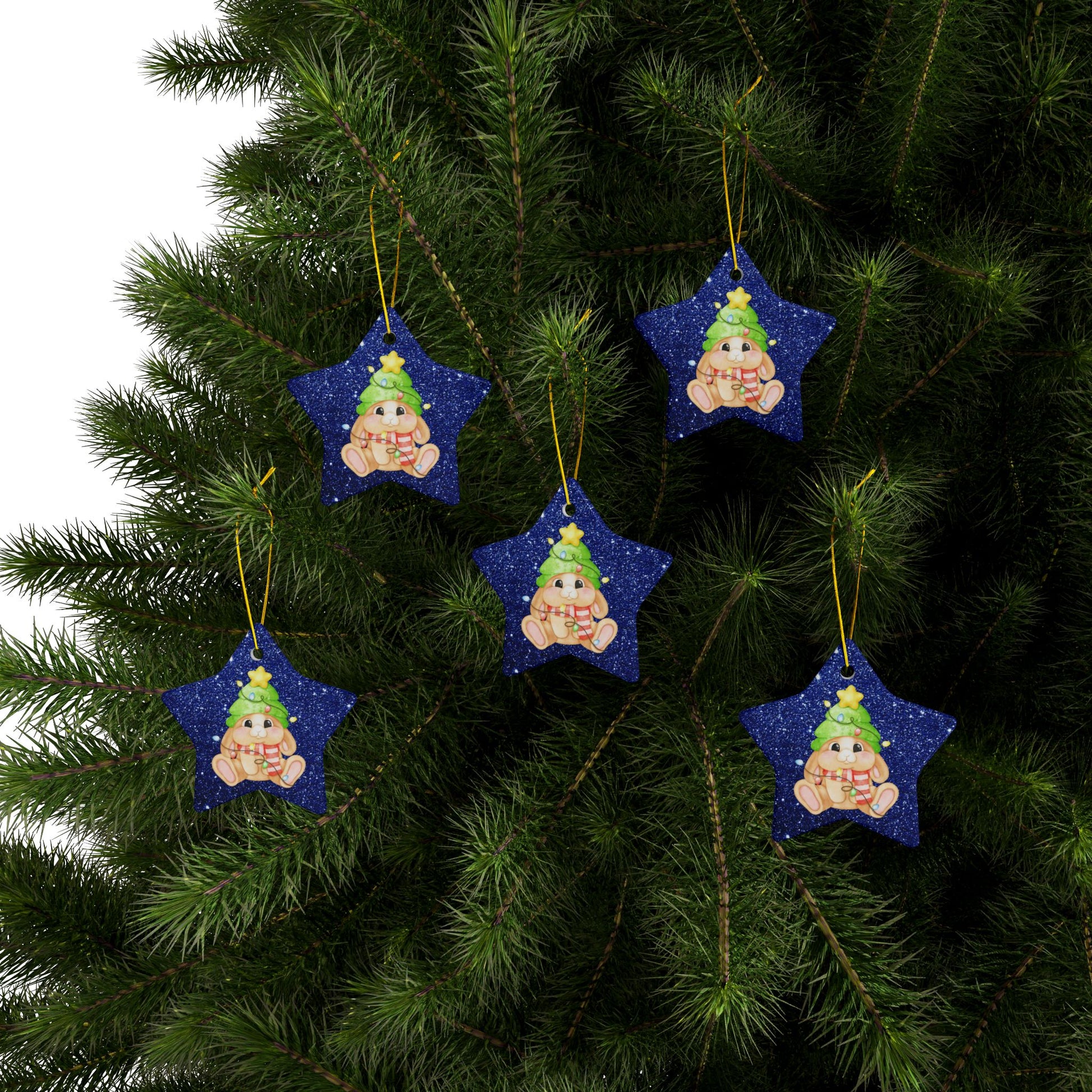 Add some bunny love to your tree with these adorable star-shaped ceramic ornaments.